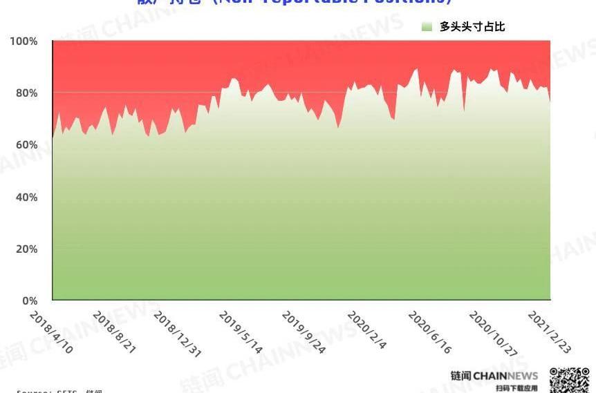 大戶持倉方面,多頭頭寸自3030張上升至3650張,空頭頭寸自132張同步上升至259張,雙向持倉自151張下降至81張。大戶賬戶成為了最新統計周期內唯一進行多單增持的一類賬戶,這也延續了這類賬戶此前兩個統計周期內連續加碼多頭頭寸的趨勢。某種程度上可以理解為這類賬戶對于這輪回調仍然持相對積極的態度,認為市場的上升趨勢并未遭到徹底破壞。