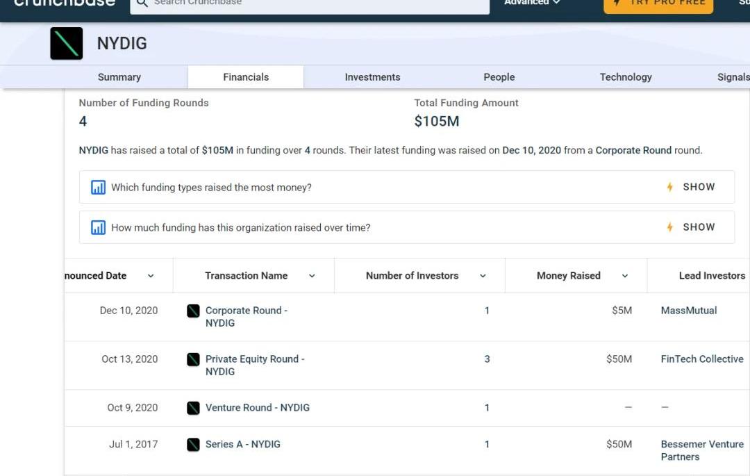 紐約數字投資集團位于紐約市,RossStevens在2017年成立了這家子公司,作為StoneRidge數字資產業務的延伸,并且親自擔任執行主席。根據公開數據,NYDIG一共經歷了4輪融資,總融資額1.05億美金。在私募股權輪共有3家投資者:FinTechCollective領投,RibbitCapital、BessemerVenturePartners參投,共計5000萬美金。去年12月11日,NYDIG又獲得了美國萬通保險公司的企業融資500萬美金。