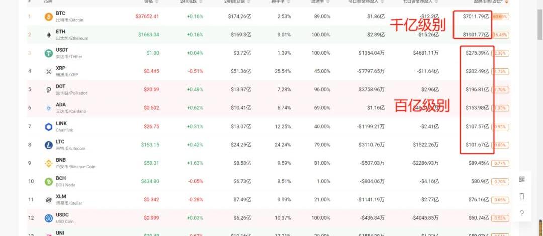 目前,幣圈TOP10項目中,市值在千億級別的只有兩個,百億級別的只有6個,相比2017年牛市程度差遠了。