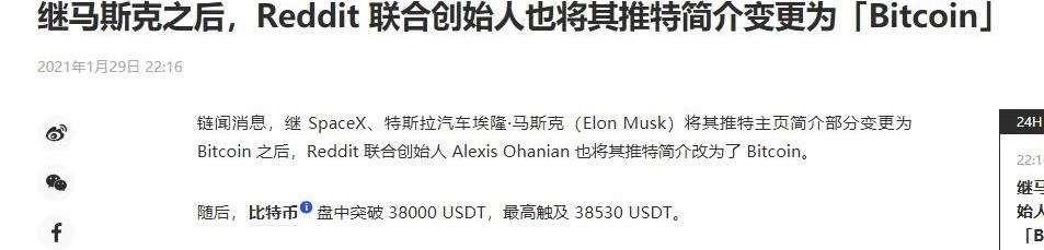 之后發現推特老板也把簡介換成了bitcoin,之后是Reddit的聯合創始人。