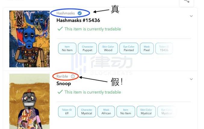 XRP/HKD-0.76%編者按:本文來自區塊律動BlockBeats,Odaily星球日報經授權轉載。2月2日,NFT盲盒項目Hashmasks官方發推表示,目前有大量的Hashmasks贗品在OpenSea上架,提醒用戶在購買時注意甄別。