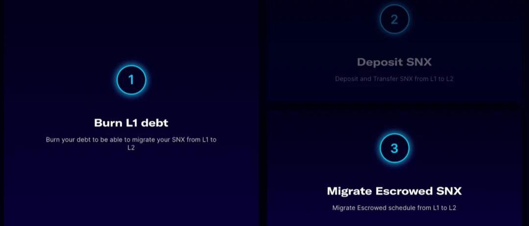 SNX持有者可以遷往Layer2(L2)網絡。遷移之前,如果在L1中有債務未償還,需要先還清之后才能贖回對應的SNX。