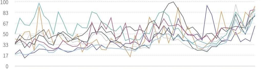 2020年各交易所Twitter粉絲數統計,來源:Twitter;TokenInsight從搜索熱度角度看,全年交易所搜索熱度波動不一,但在3月市場大規模震蕩期間、第三季度DeFi大熱期間及年末牛市期間,各交易所的搜索熱度均整體有所抬升。