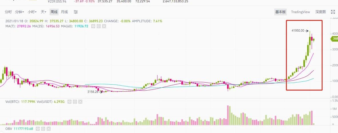 日線中,價格保持在7天均線附近,但是仍然是遠高于25天和60天均線的。3天的K線和周線中,價格都遠高于21天、7周的均線。在這種局勢下,即使BTC繼續漲,應該也立不住,畢竟實在太高了,敢在4萬以上接盤的人應該不多。所以,小蜜蜂以為接下來發展可能是以震蕩橫盤為主。通過一段時間的洗盤,讓BTC的價格相對穩定住。寫在最后