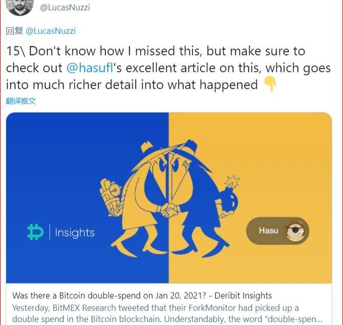 15、請務必查看@hasufl_s有關此事的優秀文章,其中詳細介紹了所發生的事情:https://insights.deribit.com/market-research/was-there-a-bitcoin-double-spend-on-jan-20-2021/