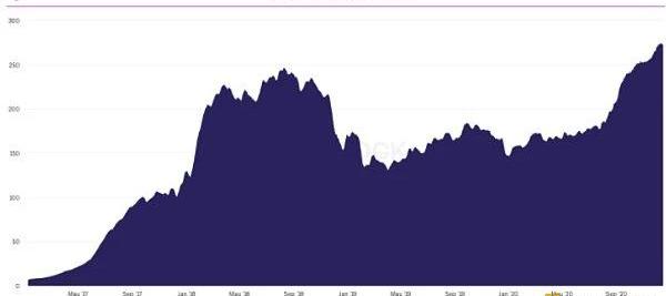 當比特幣的價格創下新高時,以太坊也有很多值得慶祝的事情。從基本面到各種文章介紹,有一系列指標表明以太坊已采用為全球價值互聯網的結算層。去中心化經濟正日以繼夜地建立起來,而且有很多進展可以證明這一點。回想兩年以前,DeFi行業幾乎不存在。現在,超過150億美元的資金用于支持強大得金融應用程序,200億美元用于支持穩定幣——只要有互聯網連接,任何人都可以獲得穩定幣。盡管我只關注了這10個創新高的指標,在以太坊經濟中,還有其他很多指標也達到了新高。非同質化代幣和電子藝術品交易量已達7位數,閃電貸等加密貨幣原生金融基元交易量也飆升到數十億美元。這些數不勝數的例子證明了一點:以太坊在發展。發展背后也有很多推動基本面向好發展的消息:ETH2.0進展順利,最近芝加哥商品交易所宣布在2021年支持ETH期貨,美國聯邦儲備委員會主席Jerome正準備實行新一輪刺激政策。那ETH下一次達到新高是什么時候呢?
