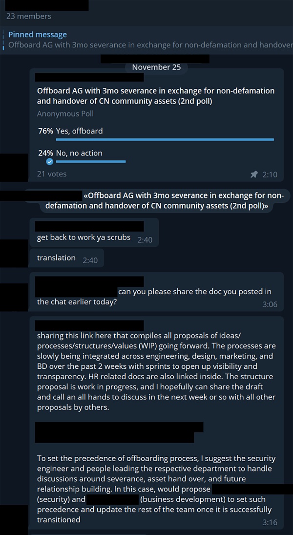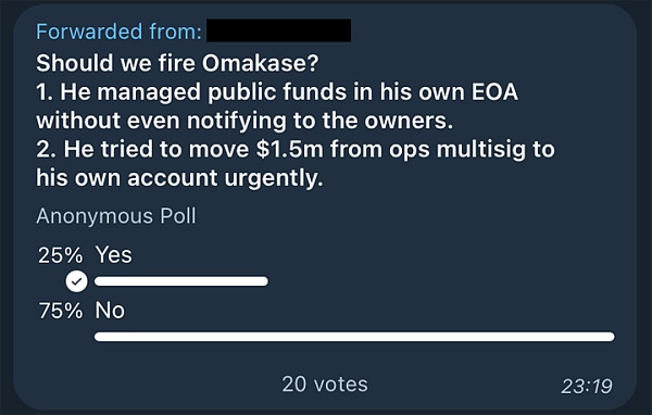 rekt.news 獲得了 Sushi Core 聊天的訪問權限(當時設置為公開訪問),在那里我們看到了 Sushi 團隊成員進行的內部民意調查的結果。
