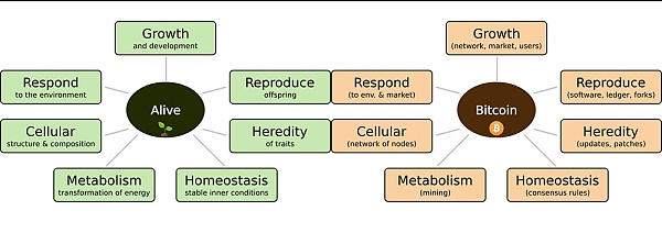 可以說,比特幣的“靈魂”生活在網絡空間(cyberspace)中。在那里,比特幣吸收有用的想法并將其納入其代碼中。與所有生物一樣,某種東西如果能幫助有機體生存,則其很有用。盡管比特幣具有各種對環境做出反應的自我調節機制,但如果變化足夠劇烈,則可能需要新的思想來生存。