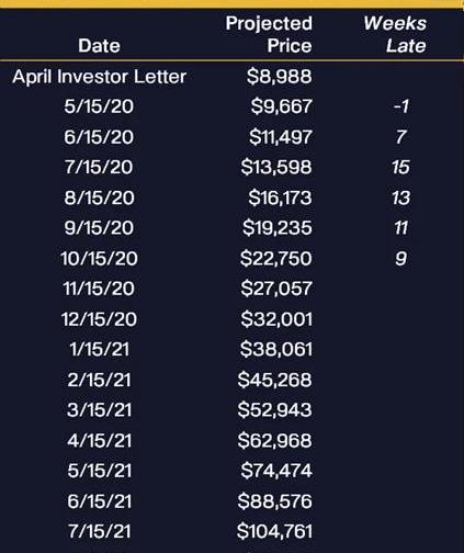 實際價格落后于這個歷史預測--但是,并不是落后許多。按照預測,9周之后的價格將會到達$115212。