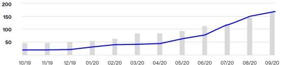數據來源:GenesisTrading在存款業務方面,Genesis也發展迅猛。今年第三季度,大量的機構投資人將資產存入Genesis。第三季度存款業務的機構客戶數量增至165個,環比增長47%,同比增長275%。