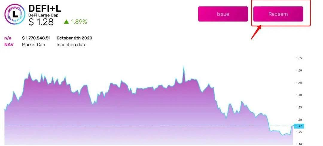 由于PieDAO的指數產品采用了真實資產支撐的結構,所以是可以實時贖回兌付資產的,贖回無需額外支付手續費。在DeFi+L的基金頁面上,點擊Redeem,選擇好所需要贖回的資產數量即可。