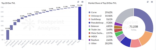 Footprint Analytics:前20名 DEX協議 TVL的市場份額