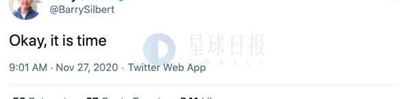 11月30日,灰度周一上班前,BarrySilbert在推特上再次表示,我猜黑色星期五的比特幣拋售正式結束了,希望你備貨充足。