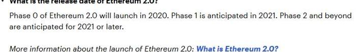 如前所述,如此規模的更新需要開發,在協調和安全方面也不是絕非小事。為此,從1.0到2.0的更新將主要分3個階段進行。第0階段:信標鏈。首先要完成的將是信標鏈的建立。由于暫不支持分片鏈,因此不會有真正的同步。一開始,鏈只需要注冊驗證者,協調大家所押的ETH。現在我們就處于這個階段,存款合約在昨天進行了發布。
