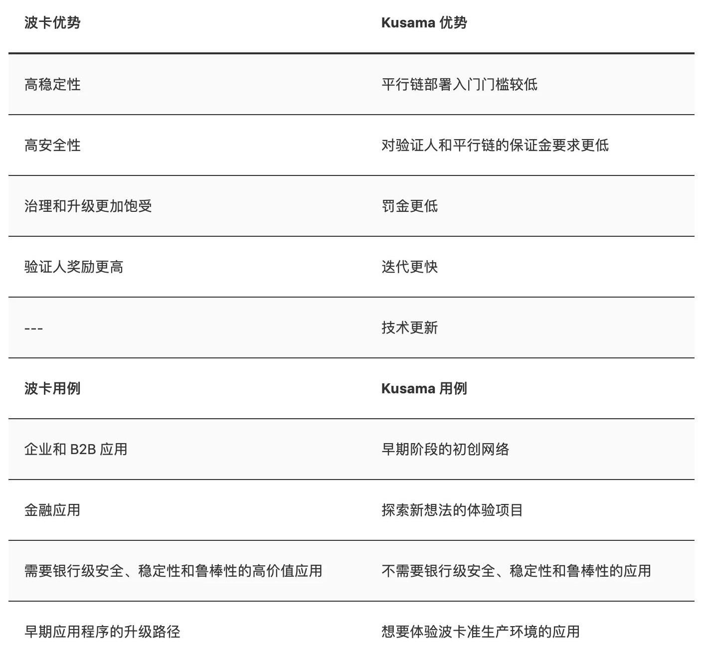 波卡vsKusama,資料來源的確,一些項目都是從Kusama網絡上起步然后在波卡網絡上投產,但這種做法并不是必須,由于其自身優勢,許多項目依然會選擇繼續留在Kusama網絡上。Kusama網絡所能提供的第一個優勢就是速度,Kusama的治理效率也更快,這將推動許多項目可以快速實施新的升級和開發,因為擁有最新技術的開發人員才可以快速交付產品。從這個角度來看,Kusama比波卡的適應和發展速度更快,據悉Kusama平行鏈預計將會在今年年底推出,而波卡平行鏈發布可能還需要等待六到八個月時間。Kusama網絡另一個重要優勢就是能讓開發人員以更低的成本部署自己的項目,由于Kusama網絡綁定要求比波卡更低,同時平行鏈上線時間更快,因此不少開發人員已經將Kusama看作是項目部署的理想場所。相比之下,波卡的平行鏈插槽非常昂貴,開發團隊可能不得不投入數百萬美元的費用。雖然波卡生態系統中已經有許多加密項目,但考慮到成本問題,有些項目已經不考慮在波卡區塊鏈投產上線了——比較在有Kusama的情況下,如果兩者之間沒有太大差異,為什么還要花更多「冤枉錢」呢?值得一提的是,如果Kusama團隊將自己的項目名稱換一下,比如改成「波卡2」,其估值可能會變得更高。目前波卡已經在加密行業里打響了品牌知名度,但Kusama可能必須從頭開始塑造品牌,通過教育培訓讓更多人了解這個項目。但是,隨著Kusama在今年四季度啟動平行鏈,這種信息不對稱性可能會消失,從而會使Kusama的市場估值進一步上升。平行鏈的推出將讓Kusama成為「游戲改變者」