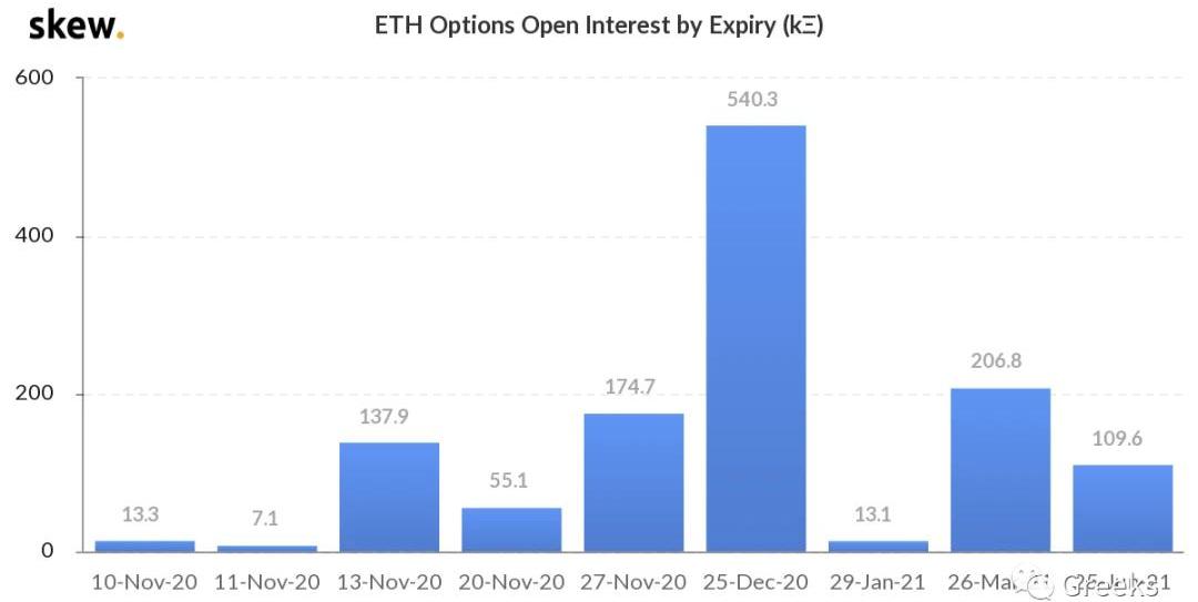 以太坊年底持倉54萬ETH,當月期權持倉17.5萬ETH。
