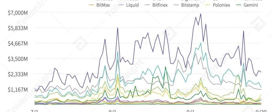 20Q3重點交易所現貨成交量表現,來源:TokenInsight