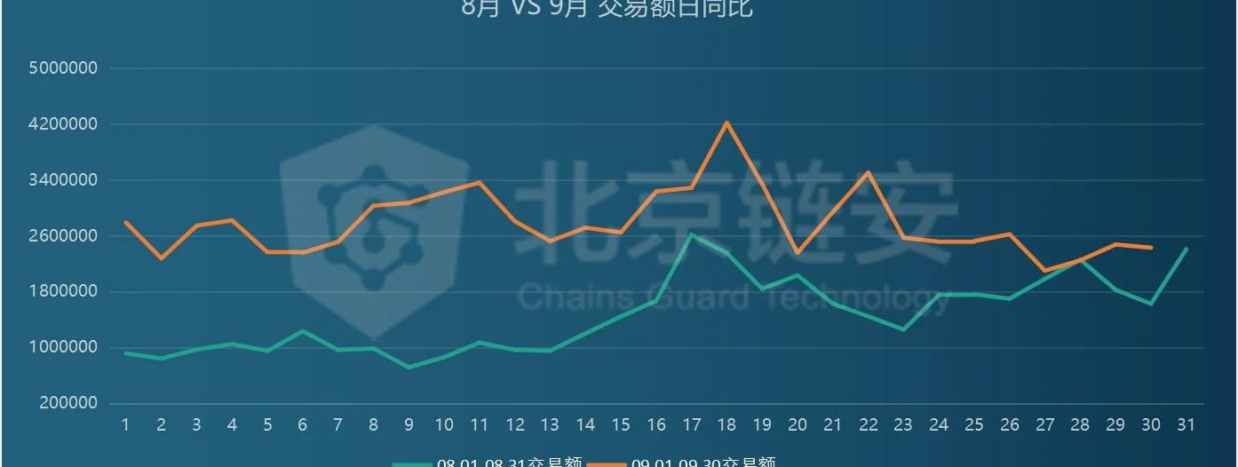 2020年9月的鏈上大額轉賬數為39660次,比2019年8月的39367次上漲了0.78%
