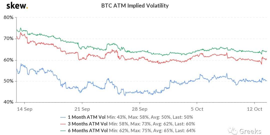 各標準化期限隱含波動率:今日:1m50%,3m60%,6m64%10/12:1m50%,3m60%,6m64%