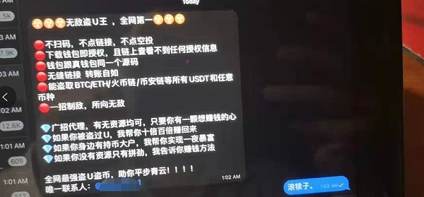 第五類,聯系類似高回報的“刷單”、“盜U”、“換U”等誘人的合作