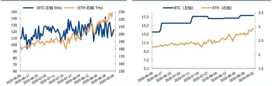 上周BTC日均算力達到122.2EH/s,環比下降2.7%;ETH全網日均算力達到226.5TH/s,環比上升4.2%。上周BTC全網挖礦難度為17.56T,環比上升0.7%;下次難度調整日在9月7日,預計難度值為17.31T(-1.39%);上周ETH全網平均挖礦難度為2.84T,環比上升3.9%。