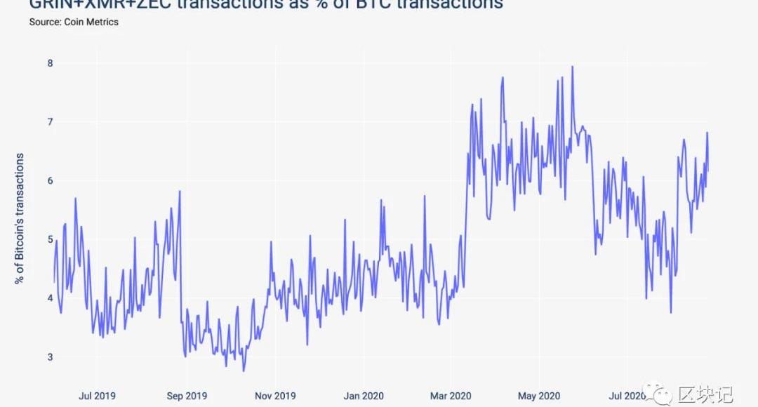 "為了使隱私得到普及,它必須是社會契約的一部分。"-《密碼朋克宣言》用戶對隱私的冷漠可能是目前匿名交易系統的最大短板。盡管加密貨幣隱私方面的技術有了很大的進步,但對隱私功能和隱私資產的使用卻很緩慢。隨著加密貨幣不斷被更多的公眾所采用,其原有的以隱私為導向的精神必須得到傳遞,才能使其得以生存。如果做不到這一點,可能會導致匿名交易系統的原始理念逐漸消失,被加密貨幣的其它用途所取代。從好的方面來看,比特幣的出現重新激發了人們對密碼學話題的研究興趣,產生了Bulletproof彈和Mimblewimble等新的創新。我們也注意到,Wasabi和Samurai'sWhirlpool等提供商對CoinJoin重新產生了興趣,盡管它們在比特幣的交易量中只占很小的比例,但卻在快速增長。