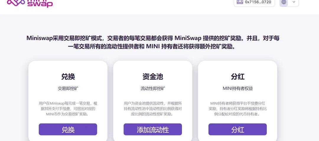DEX成了挖礦的重區,這是為何呢?因為交易所現金流豐富,向來是大家爭奪的焦點。在三大霸占的CEX賽道,競爭太激烈。在DEX賽道,才開始起步,uniswap為DEX巨頭,但似乎沒有到固若金湯的地位。sushi開啟了挖礦的方式,掠奪uniswap的資金和人氣。這個方式開啟之后,學習模仿者越來越多。sushi通過挖礦的方式分發代幣,既聚集了人氣和市場資金,又從市場收割了一波資金,然后再部署DEX產品,部署的DEX還是抄的uniswap。之前關于sushi的文章有提到,如果sushi的方式成功,將會有大量的模仿者。但sushi這種吸引流量和資金的挖礦方式會被改進優化,并不斷使用。miniswap模仿sushi開啟了挖礦模式,從順序上看,mini是先開發了產品。現在mini如何實現項目冷啟動呢?mini本身有交易挖礦的模式,在當前apy動不動就1000+的情況下顯得有點弱。昨天晚上,他們發布了一個新的挖礦。當然,他們說是首發優質項目。