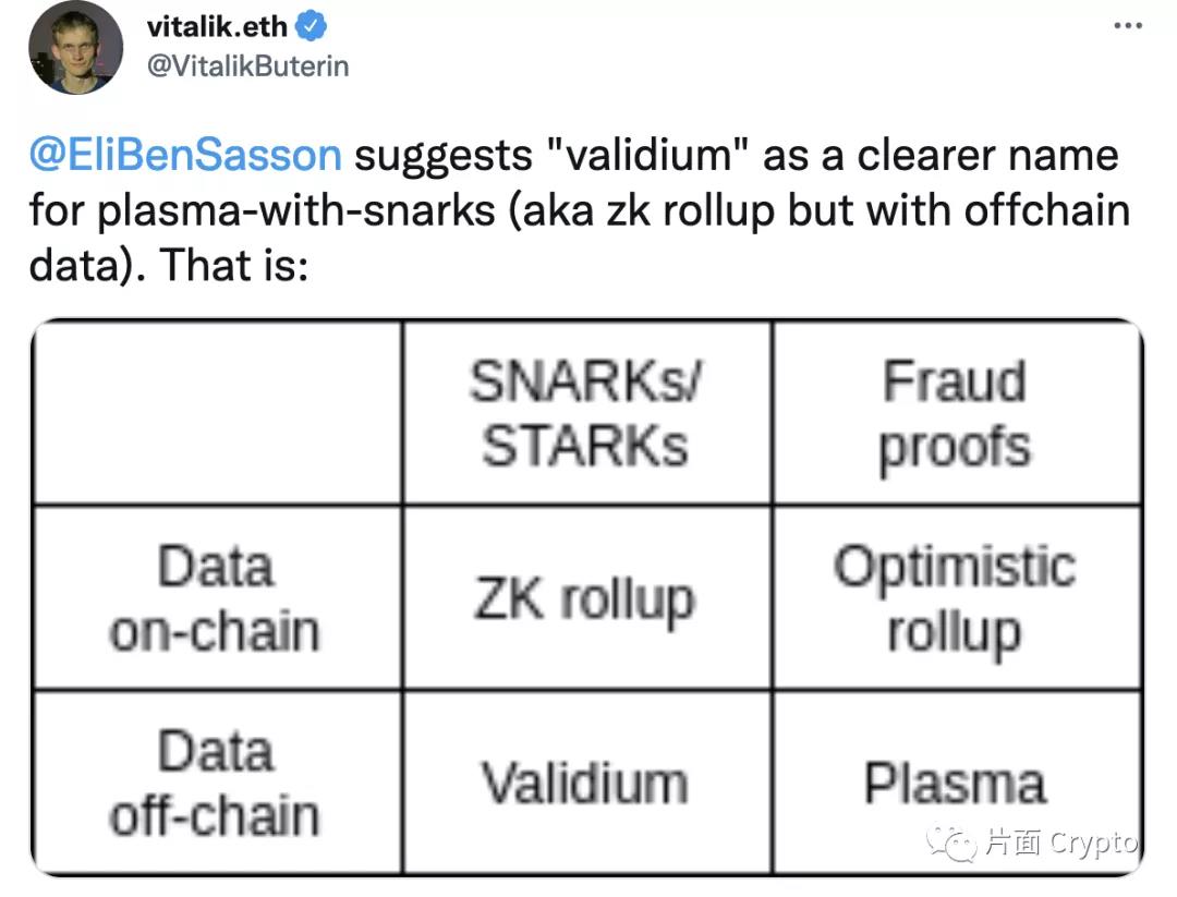 而下面的兩行就是在說數據可用性,on-chain 就是說二層的交易集合的數據對主網來說是可用的,而 off-chain 則是說二層交易集合的數據對主網來說是未知的,不可用。