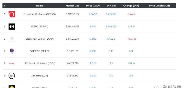 根據SecurityTokenCap最新數據顯示,當前排名第一的STO是OSTKO,市值是2.71億美元,24小時交易量為22.54萬美元;排名第二的則是TZROP,市值為1.31億美元,24小時交易量為64.30萬美元。