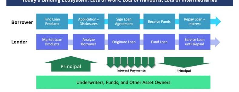 回到我們開始的地方,太陽底下確實沒有什么新東西。雖然加密貸款生態系統已經從最初的簡陋樣貌,變成了一個價值數十億美元的市場,但其中一個常見的問題是,最需要獲得資金的借款人往往最不可能將貸款金額的100-300%用加密貨幣或數字HELOCs或數字黃金等易于出售的資產來抵押。雖然投機是件好事,但我們應該試著喜歡并為真正的人解決實際問題?從目前的借貸生命周期來看,如上圖所示,上述過程中的眾多步驟都為許多中介機構創造了插入空間,并增加了借貸市場的復雜性、摩擦和成本。附表4:借貸--復雜過程的簡化表示