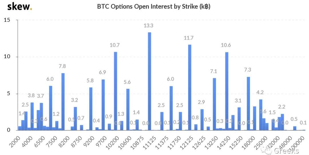 XRP/HKD-4.11%今天是當周的交割日,本周有2.1萬幣的BTC期權交割,11萬幣的ETH期權交割。從周期權來講,交割量是比較大的。這和本周大幅度畫門行情有直接關系,目前比特幣價格橫盤在年內新高附近,上下的空間都很大。本播報由Deribit和Greeks.live聯合推出。