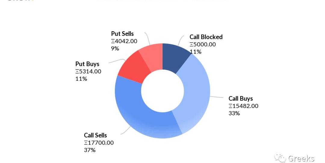 以太坊今日CallSell實現了名義價值17700幣,CallBuy有15400幣,同時還有5000幣的CallBlock,總共80%的成交都是針對看漲期權的。交易的天平已經傾斜了,現在以太坊的看漲期權和看跌期權已經產生了非常嚴重的失衡。