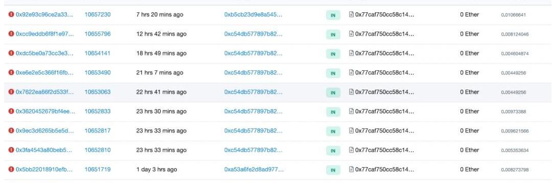 4.綜上因素,Based智能合約無法被官方正確初始化,因此任何質押行為都無法進行。質押失敗的交易記錄:
