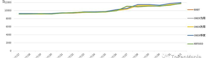 資料來源:OKEX,BitMEX,TokenMania圖16近兩周比特幣期貨升貼水率