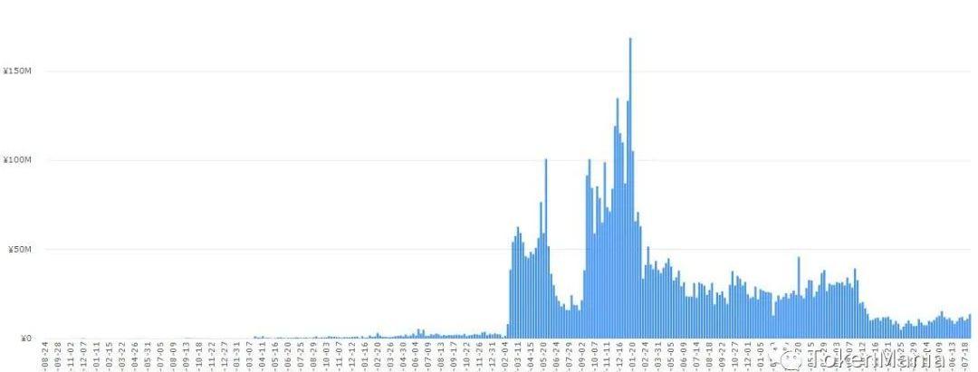 資料來源:非小號,TokenMania圖4九大交易所歷史每日總交易量變化