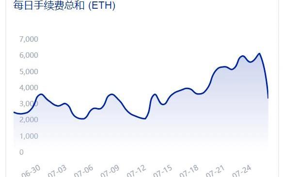 DEX的活躍,也帶來了ETH鏈上手續費的節節攀升,每日ETH手續費總如下圖。