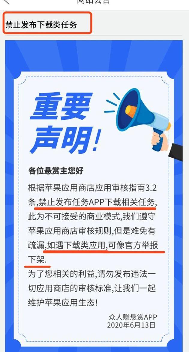 眾人幫明明在其首頁的banner位公告,應蘋果應用商店的要求,蘋果客戶端不再展示下載類試玩類任務。而我作為一個蘋果用戶,前面看到的下載任務又是怎么回事兒?解釋只有一個,眾人幫表面一套背后一套,何其騷也。