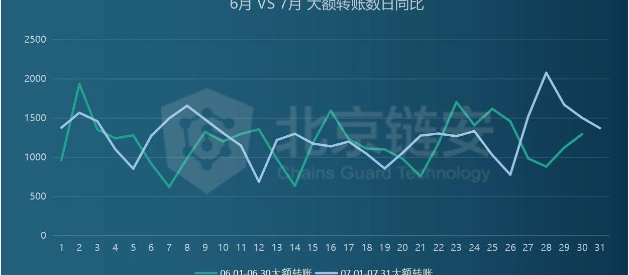 從近兩月活躍地址數和幣價的關系來看,7月的活躍地址數增長趨勢與幣價的關聯度相對于6月,在7月下旬明顯呈現更強的正相關關系以上便是7月份鏈上交易整體的變動情況,在交易所方面,我們知道在6月,在經歷了5月份鏈上相關數據暴漲85%的狂飆突進之后,6月幣安的相關鏈上數據全面回落,火幣數據全面反彈,OKEx四平八穩。而在比特幣價格的突破之月,三大交易數的數據又會有怎樣的異動,它們彼此之間的比特幣進出是否會發生重大變化呢?在7月數據回顧的下一部分,我們將向各位朋友揭示交易所在7月的最新趨勢。