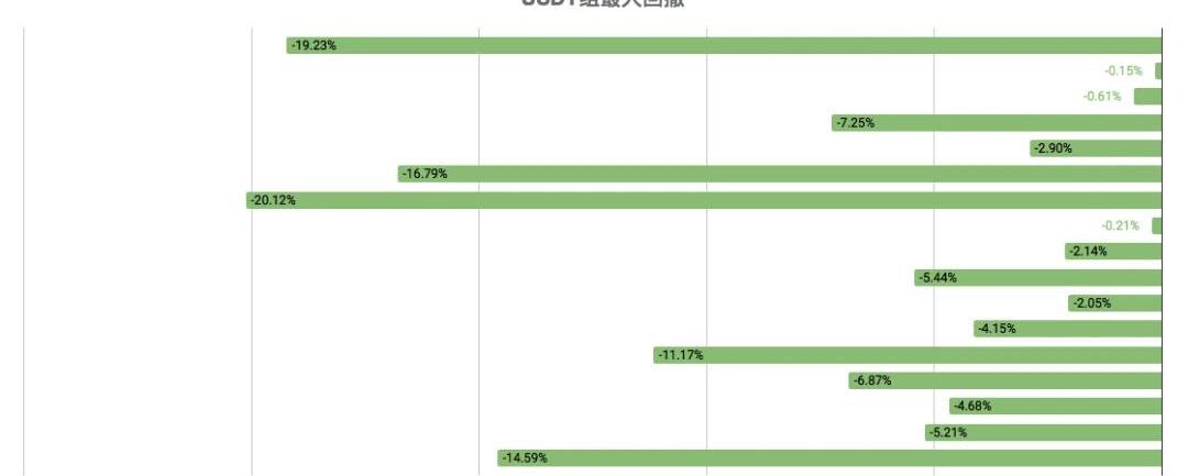 根據最大回撤數據顯示,BTC組投資較為激進,回撤率較大,行情上下波動較大;USDT組投資較為保守,回撤率較低,風險釋放較為平均。市場操作難度加大,個人投資者需要注意杠桿風險。