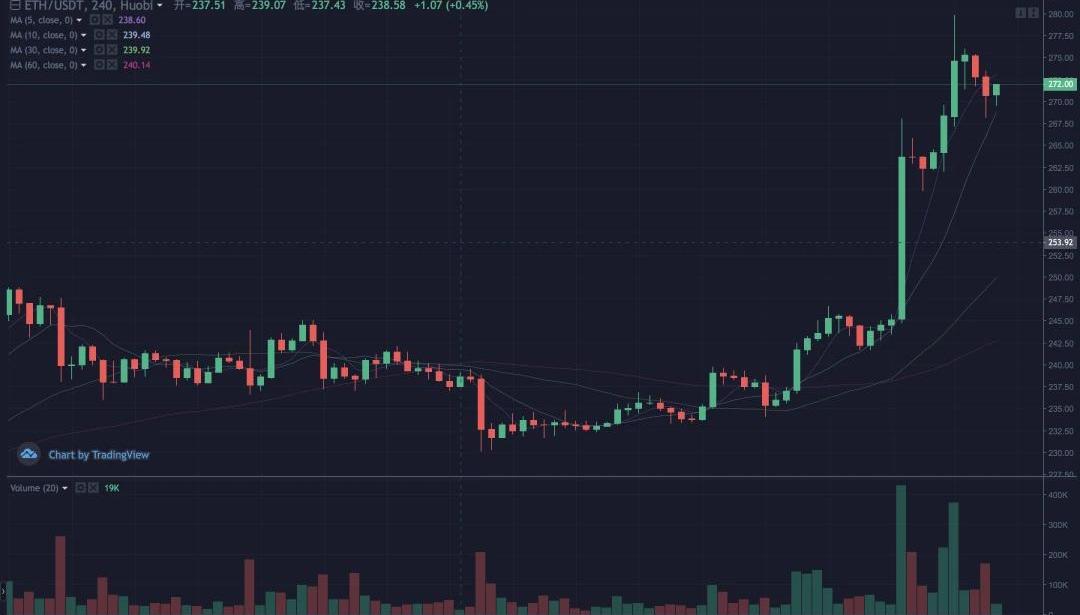 根據CoinMarketCap數據,ETH近7日日均換手率為24.60%,較三個月內日均換手率下降了23.64%,較上周日均換手率下降0.34%。ETH快速上漲帶動整體數字貨幣普漲行情,但整體資金量并未明顯放大,市場資金仍處于抱團取暖,定向拉升階段。ETH放量突破$250后,打開上漲空間,但成交量仍是重要制約因素。