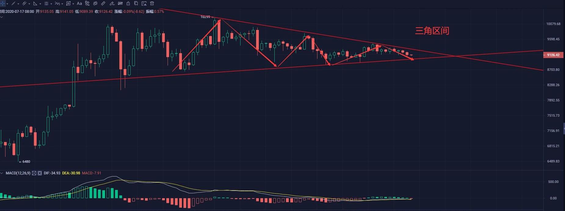 比特幣近期和美股的高度相關性主要有幾點原因:1、近期比特幣的波動率實在是太弱,除了莊家偶爾拉盤砸盤外,依靠市場內本身的力度,均只是在幾百美金的區間運行,所以被這么大的市場影響無可厚非。2、當前之所以不跟隨A股的原因是,我國的放水程度并不厲害,場內的資金有限,相對于美股來說,參與A股的對象主要以散戶為主,而美股大多以機構為主。當A股爆發時,散戶的資金幾乎都被股市吸引,幣圈還會被A股抽取資金,這一點相信前幾天大家都有所發覺,所以當A股上漲時,以比特幣為首的主流貨幣上漲概率并不大。3、大家都知道自三月份以來,美聯儲開始大放水,到5月份幾乎是無限量放水以拯救股市,很多機構拿著大筆放水的資金開始買各種資產,其中或許就包括比特幣,而股市漲跌就是當下資金起到作用的反應,自然會提高價格相關性。4、相較于A股,美股里的資產還是使用美元計價,比特幣從某種程度上也是如此,即使中間涉及穩定幣,但無論是USDT還是USDC和美元的差距都非常小,所以對美元具有同樣的反應。基于以上幾點原因,導致近期美元和比特幣的相關性高度契合。大家都知道,即使近期上漲的很厲害,都是由于美聯儲無限量放水導致的,那這樣持續放水,相當于無限量印錢,這樣到最后會導致的后果是,美元會貶值,如果停止印錢,在經濟環境如此萎靡的情況下,美股崩盤也是早晚的事,所以到最后美國還是會面臨美股還是美元的抉擇。我們先假設兩種情況分別會對比特幣產生什么樣的影響。如果繼續選擇美股,那美元會走向貶值之路,對于比特幣來說是絕對的利好,畢竟從某種程度上比特幣就是作為抗通脹的產品存在,當美元貶值,比特幣自身價值不變的情況下,同樣數量的比特幣就會價值更多的美元。如果選擇美元,停止放水,那美股的反彈之路會戛然而止,甚至會重演三月份的情況,對比特幣也會產生較大的利空影響,就像“312”重演一樣,但是我們還是要記住,美股的崩盤對比特幣本身影響并沒有那么大,“312”暴跌是因為當時市場內杠桿過高以及量化交易連環爆倉的原因,不能一味的歸咎于美股暴跌,所以若是真的再次發生美股暴跌事件,比特幣不一定會重演上次的結果,如果重演的話更好,只要買買買就好了。最后,對于美國來說,救美元還是美股依然是個未知數,但我們可以分析一下可能性。對于美國來說,什么最重要?美元。因為美元才是美國稱霸全球最重要的原因,美聯儲升息還是放水一直是全球金融機構最關注的財政政策。而美股只不過是特朗普連任的工具,不是美國的。而且當前美聯儲已經是接近0利率+無限寬松,在這一波效應結束之前,美國經濟要恢復到能支撐這么高的股價,從目前的來看,這個恢復速度幾乎是不可能的。所以從賬面上看,美股再次下跌還是早晚的事,那是否會帶崩幣市呢?美股會是懸在幣市上方的達爾摩斯之劍。話說回來,特朗普連任的工具除了美股還有就是攻擊中國,若是美股真的出現問題,那是否會再次采取瘋狗式的方法來對付中國?特別是特朗普當前的支持率落后于拜登的情況下,在十一月份大選結果出來之前,我們還真的是需要小心這只“瘋狗”亂咬。回到行情上,或許是近期行情波動小的原因,大盤稍微動一下,大家都變的小心翼翼,昨日比特幣僅200美元的波動不到,市場便已經如喪考妣,按照以前,大家都在猜測每天700-800的波幅會當天的什么時期開始發動吧,近期的幣圈確實變的越來越不像幣圈了。日線上看,處于收縮三角形中持續震蕩,逐漸接近三角區間頭部時,波動的幅度也越來越小,但波動越來越小也就意味著將會走出區間決定新的方向,近期是處于黎明前的黑暗中。