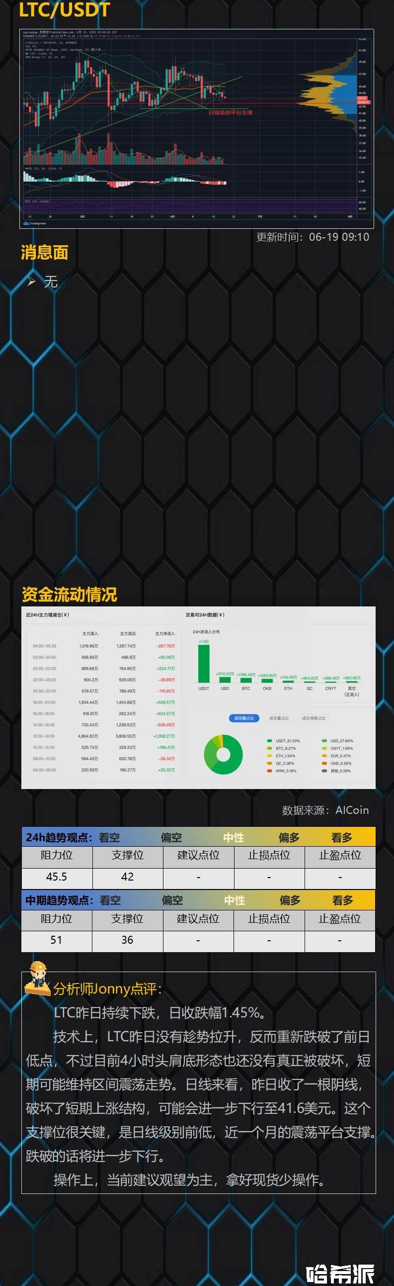 1900/1/1 0:00:00上期回顧BTC:BTC成交額不足成為上漲最大阻力,預計將在此下探$8,500,確認支撐力度。6月24日BTC從$9,800產生一定程度回調,最低下跌至$9,000.