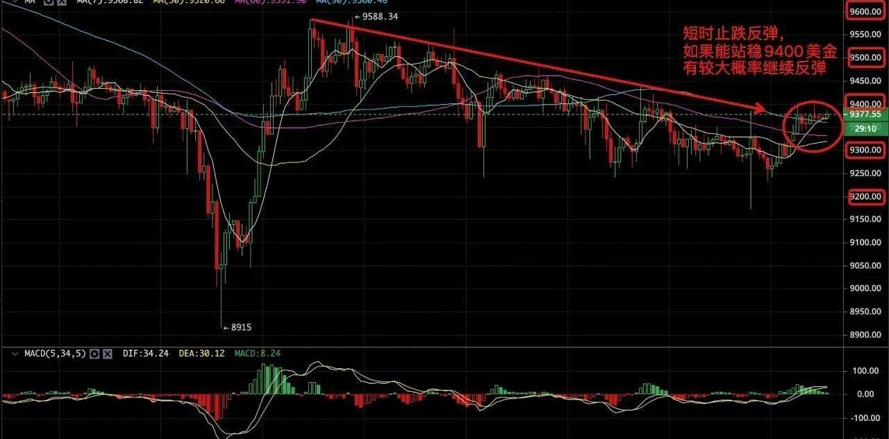 XRP/HKD-0.98%BTC延續縮量整理走勢,將近一周的時間,仍維持在9200-9600美金區間震蕩。至于什么情況下能有效突破、并選擇方向,前天的文章中有提及,看兩方面的因素:場內市場和場外金融市場。場內短期需要莊家釋放大量能來主動選擇方向,中長期需要市場打造一個新概念或是爆點并持續營銷,來吸引圈內外的人氣和資金進入。場外主要是美股等股票市場,在疫情和經濟的影響下,收回年初的跌幅后,下一步將何去何從,是二次探底,還是逐步開啟慢牛走勢?BTC在場內沒有動力突破的因素下,會和美股保持高度同步的波動性,因為金融市場本是一體的。技術指標上,今天需要留意幾個點位,9300、9200美金的弱支撐,9400、9500、9600美金的區間壓力,區間內震蕩的概率較大。明天早上是一個重要節點,周線收盤,看是否會有較大的波動出現。在此之前,觀望為主,或是小倉位的介入都行,雞肋行情能抓住就交易,抓不住繼續等待更好的機會。