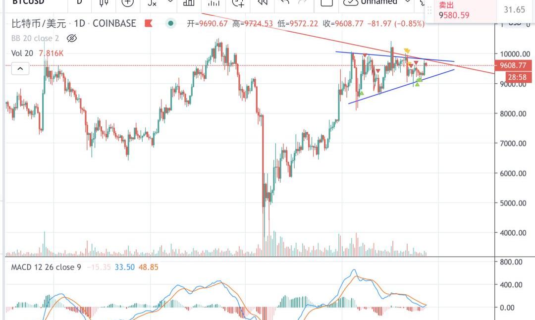 數據來源:CQ.Live昨天Paypal宣布和Venmo推出加密貨幣買賣服務,類比理解一下,就是“支付寶上開通數字資產OTC服務”,當年同花順中只是加上數字貨幣的行情就被炒翻了天,這次更刺激的消息,好像沒有怎么影響到幣價走勢。不過想想也是,對Paypal的3億用戶而言,你加不加這個功能和我有什么關系,不知道的還是不知道,不了解的還是不了解,不會買的還是不會買,畢竟也不是說把A股的開戶和交易入口放在支付寶上,整個股市就會漲起來呀。BTC昨天早上在觸碰9800美金的壓力位之后略有回落,在9600美金上方橫盤一天,量能溫和,MACD有水上金叉的預期。仍是多頭趨勢,今明兩天震蕩修復指標的可能更大一些。
