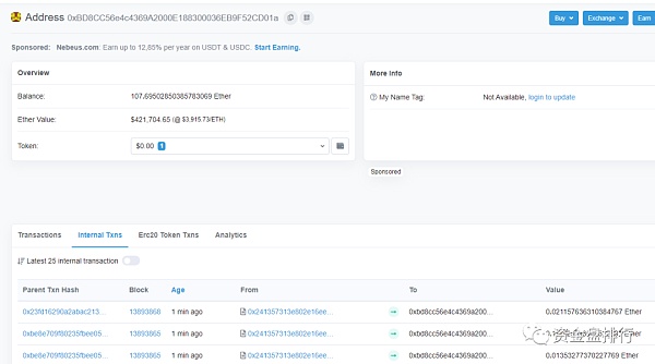 截止目前,該地址已收入100多個ETH,目前還在源源不斷的流入,項目方一天不到的時間,光稅收入就上千萬。還不排除項目方自己偷偷賣幣的地址。(數據項目方可以任意構造,無限委托賣出)