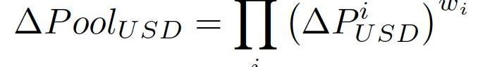 其中Bi和Wi分別是代幣余額和權重。Balancer儲備池的值