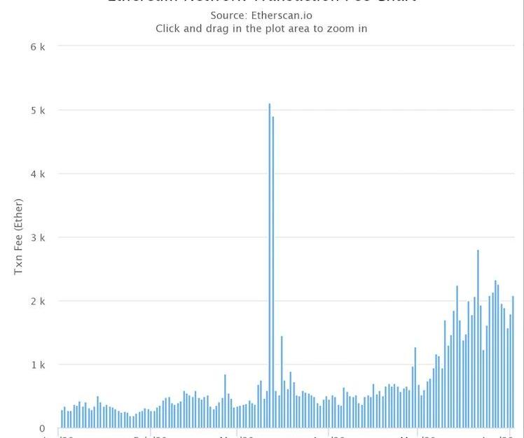 而這種情況,在去年是很罕見的。整個2019年,Gasprice基本維持在10-20gwei。但到了今年,根據etherscan數據,從年初開始,Gasprice逐漸上升。特別是最近兩個月,Gasprice始終居高不下,維持在30gwei以上。