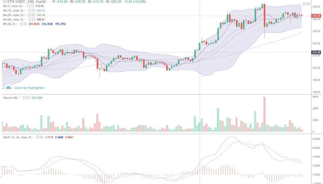 根據CoinMarketCap數據,ETH近7日日均換手率為47.18%,較三個月內日均換手率下降了37.77%,較上周日均換手率下降1.08%。ETH是本周的領漲幣種,但成交額方面呈現連續三周下降,資金方面的壓力凸顯,上漲動能進一步弱化。ETH在$230附近逢低做多,若跌破$220止損。