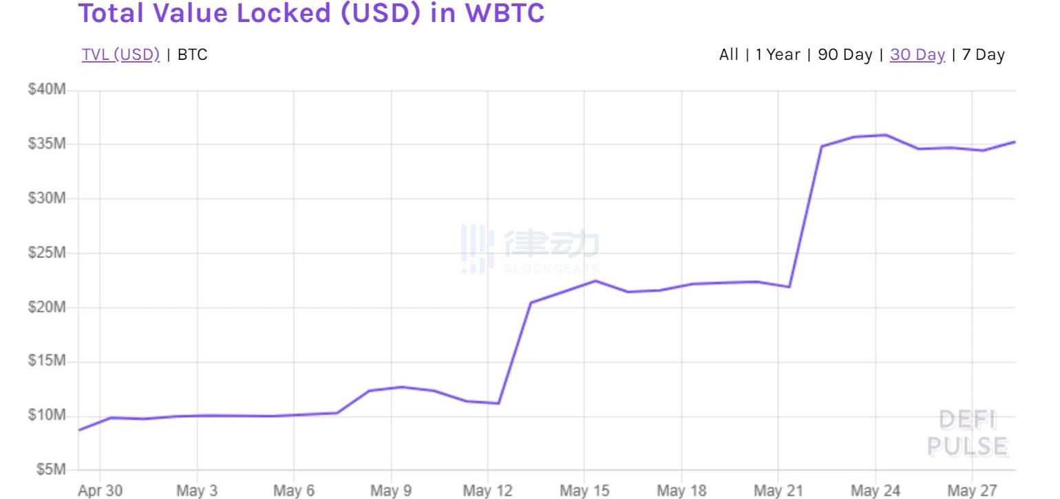 XRP/HKD-2.92%編者按:本文來自區塊律動BlockBeats,Odaily星球日報經授權轉載。將比特幣接入以太坊一直是許多項目的目標。在過去的一個月里,Maker新增了WBTC作為Dai抵押品,這一舉動似乎直接點燃了Defi的新趨勢。僅在5月份,以太坊區塊鏈上比特幣代幣數量已經從2500枚直接躍升到了5000枚。如果將這些比特幣以美元計算,那么5000枚與比特幣掛鉤的資產價值約4770萬美元,以太坊鏈上的BTC價值已經是閃電網絡上的5倍多。