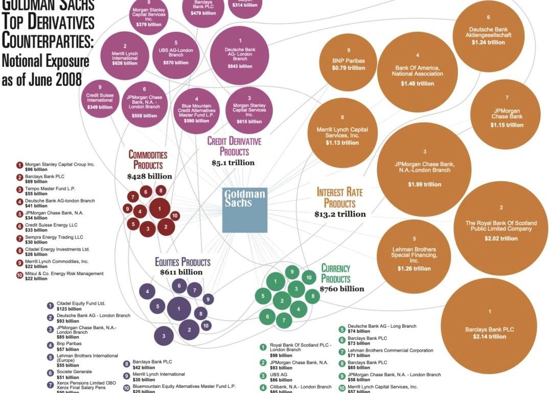 上圖顯示,2007年金融危機期間,“政府用來拯救AIG公司的數十億美元,以及美聯儲用來清除該公司最糟糕的信用違約掉期的數十億美元,其中近400億美元轉移給了僅10家作為該公司交易對手方的金融機構。”這10家金融機構包括興業銀行(SocieteGenerale)和高盛(GoldmanSachs)等。圖源:紐約時報歸根結底,金融是一個相互交織的紙牌屋: